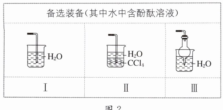 (2) 氨气极易溶于水,不溶于 $ CCl_{4} $,需选择防倒吸装置进行实验探究,因此需选择图 2 中的Ⅱ或Ⅲ。根据喷泉实验的原理,要使装置 D 发生喷泉现象。用热毛巾将烧瓶捂热,可使 D 中氨气受热膨胀通过导管与水接触,即产生“喷泉”。