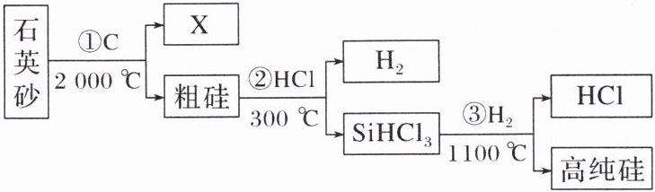 8. “中国芯”的发展离不开高纯单晶硅。由石英砂(主要成分为$SiO_{2}$)制取高纯硅涉及的主要反应用流程图表示如下: