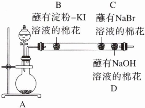 。(2)乙同学认为应将甲同学实验中 B、C 两处的棉花调换位置,用氯气先置换出溴,然后溴再与 KI 接触,以判断$ Br_2 $与 KI 能否发生反应。该设想