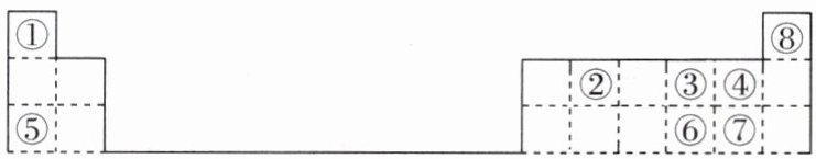 13. 如图为元素周期表的一部分,请参照①~⑧在表中的位置,回答下列问题: