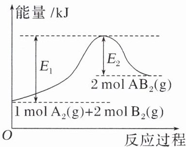 B.该反应若生成 $ 2molAB_{2}(g) $,则放出的热量为 $ (E_{1}-E_{2})kJ $
