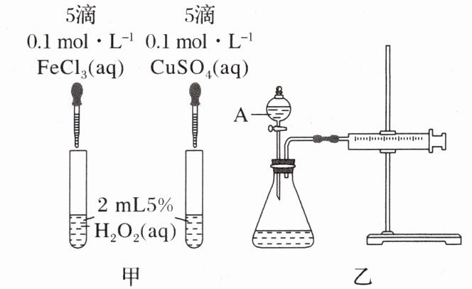 9. (2024·山西运城高一检测)为比较 $ \text{Fe}^{3+} $ 和 $ \text{Cu}^{2+} $ 对 $ \text{H}_2\text{O}_2 $ 分解的催化效果,某化学研究小组的同学分别设计了如图甲、乙所示的实验。请回答相关问题: