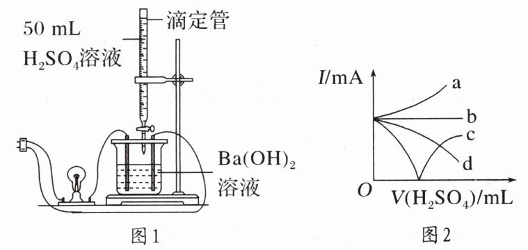 (2)整个过程中混合溶液的导电能力(用电流强度I表示)可近似地用图2中的曲线