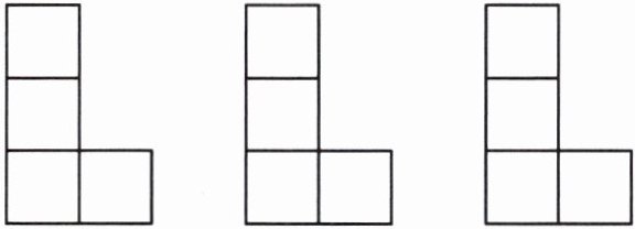 如下图所示是由小正方形组成的L形组合图形,请你在下图中添上一个小正方形,使它成为轴对称图形。