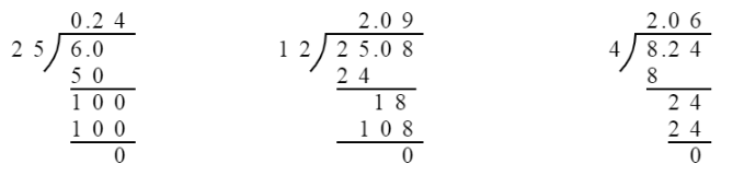 $6÷15= $ $4.2÷60= $ $12.1÷11= $