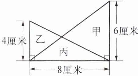 乙与丙的面积之和:4×8÷2=16(平方厘米)