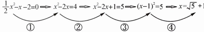 1. 新考向 过程性学习 下列用配方法解方程 $\frac{1}{2}x^{2}-x - 2 = 0$ 的四个步骤中,出现错误的是(