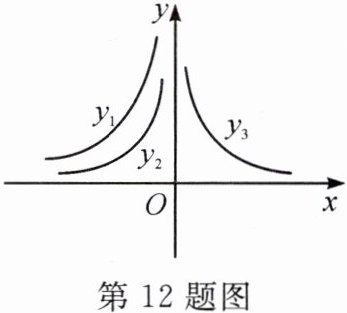 12. 如图,这是三个反比例函数 $ y_1 = \frac{k_1}{x} $,$ y_2 = \frac{k_2}{x} $,$ y_3 = \frac{k_3}{x} $ 在 $ x $ 轴上方的图象,由此得到 (