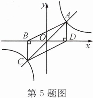 5. 如图,点 $ A $,$ C $ 是正比例函数 $ y = x $ 的图象与反比例函数 $ y = \frac{6}{x} $ 的图象的交点,过点 $ A $ 作 $ AD \perp x $ 轴于点 $ D $,过点 $ C $ 作 $ CB \perp x $ 轴于点 $ B $,则四边形 $ ABCD $ 的面积为