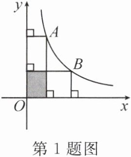 1. 如图,点 $ A $,$ B $ 是双曲线 $ y = \frac{6}{x}(x > 0) $ 上的点,分别过点 $ A $,$ B $ 作 $ x $ 轴和 $ y $ 轴的垂线段。若图中阴影部分的面积为 $ 2 $,则两个空白矩形的面积和为