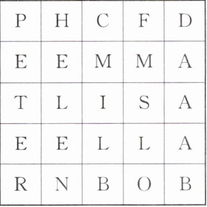 二、请找出下列表格中的人名。(注意人名横、纵向相连,首字母要大写)