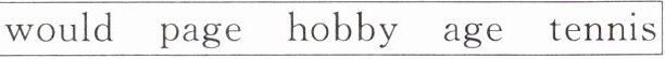 13. hobbies 14. tennis 15. Would 16. page 17. age