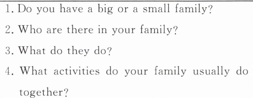 Pair work. Introduce your family to your partner. The questions in the box may help you.