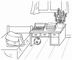 the desk. My pencil box is on it too. Five pencils are 9. in