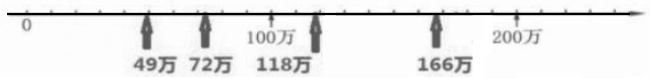 请你先把这些数改写成用“万”作单位的数,再在下图中标出这些数的大致位置。