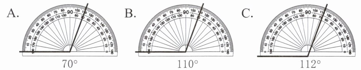 解析:本题考查角的度数测量以及比较大小,需要用量角器测量角的度数,再根据度数比较大小并总结发现。