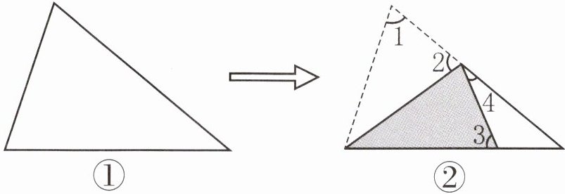 6. 如下图,将图①折叠后得到图②。已知∠1= 68°,∠2= 75°,那么∠3= (