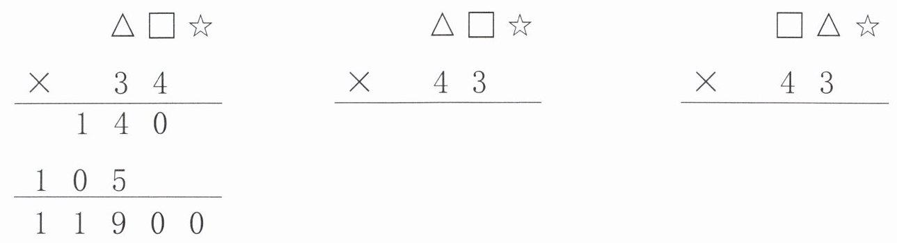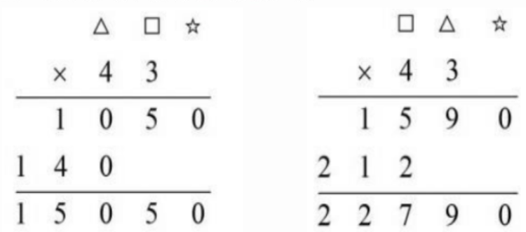 *5. 下面的竖式中,相同的符号表示相同的数字,不同的符号表示不同的数字。先观察最左边的竖式,再完成右边的竖式。