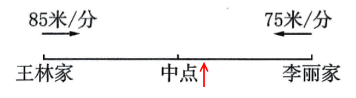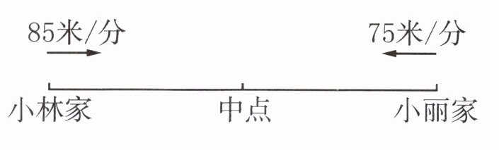 8. 如右图,小林和小丽同时从家里出发向对方家走去。15分钟后,他们在途中的某处相遇。