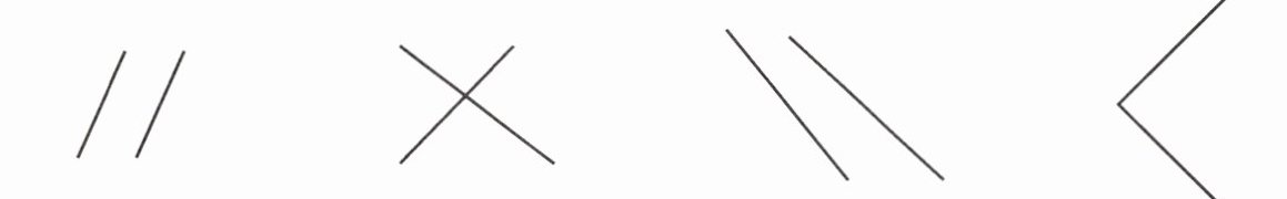1. 下面每组中的两条直线,互相平行的画“//”,互相垂直的画“⊥”,既不平行也不垂直的画“×”。