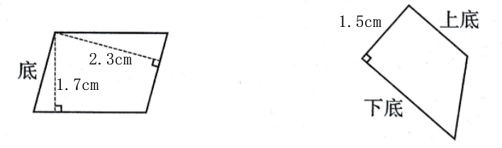 (2) 解析:本题考查图形高的测量。使用尺子测量出从平行四边形底边相对的边向底边作的垂线段的长度,梯形同理。