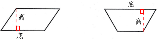 4. 画出下面平行四边形和梯形的高,并标出“底”和“高”。