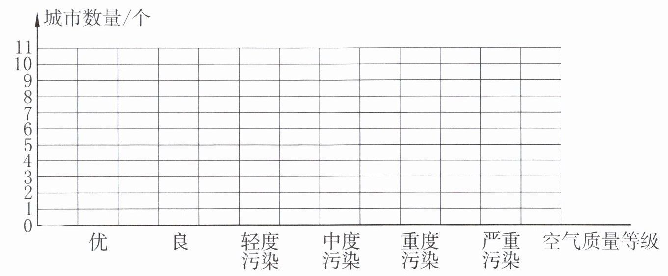 3. 一共统计了( )个城市的空气质量等级。请检验各类城市个数相加的和与城市总数是否相符。