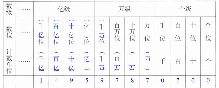 2.太阳到地球的平均距离是149597870700米。请你先把下面的数位顺序表补充完整,再把横线上的数填在数位顺序表里。