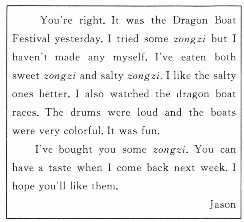 )19. What can we know from the text?A. Jason has made many Chinese friends during his stay.