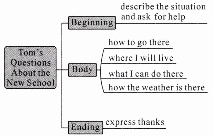 4. 写作要点:①描述当前的状况和需要的帮助;②想了解的问题;③表达感谢