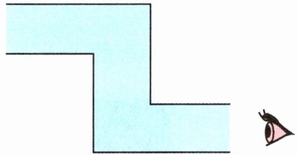 图中两面镜子需要呈$45$度角放置,这样可以使光线经过两次反射后进入观察者的眼睛。