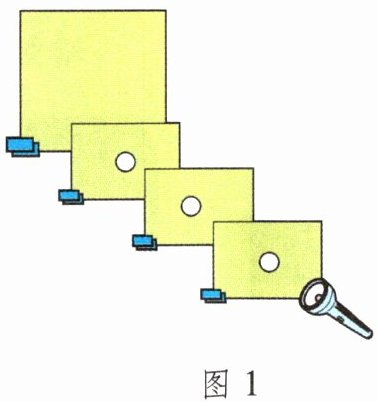 (1)观察图1可知,三张卡纸上的小孔在一条直线上,根据光的直线传播原理,光能够通过这些小孔照射到纸屏上,从而形成光斑,所以图1的纸屏上能看到手电筒的光斑。