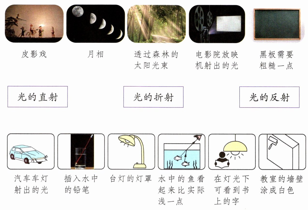 【解析】:本题主要考查光的直线传播、光的折射以及光的反射等知识点。