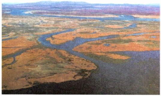 19. 右图是黄河入海口的沙洲,根据它的特征推测,这些沙洲最有可能是由于(