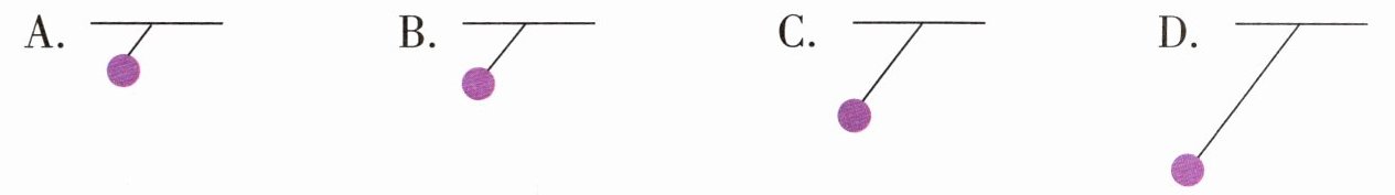 摆的摆动快慢与摆长有关,摆长越长,摆动越慢;摆长越短,摆动越快。分析各选项,A选项摆线最短,摆动最快;D选项摆线最长,摆动最慢;B、C选项摆线长度介于A、D之间。