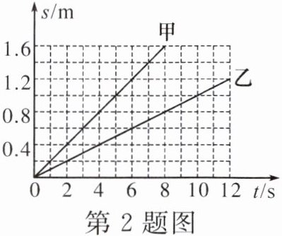2. (2024·湘潭湘乡市期末)甲、乙两个物体同时同地向东做匀速直线运动,它们的路程 $s$ 随时间 $t$ 变化的关系如图所示,由图可知(