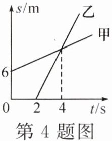 4. (2024·大庆)如图所示为甲、乙两物体在同一直线上运动的 $s - t$ 图像,从 $0$ 时刻开始计时,则关于它们的运动情况,描述正确的是(