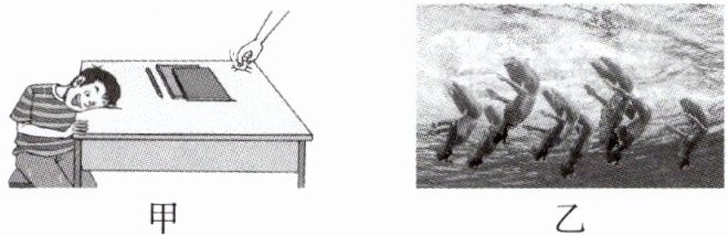传入学生的耳中;如图甲所示,将耳朵贴在桌面上,用手指轻敲桌面,我们能听到清晰的敲击声,这个现象表明固体