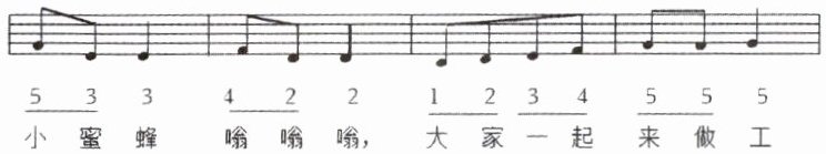 3. 如图所示是童谣《小蜜蜂》的歌词与乐谱,在小红唱到“大家一起”这四个字时,音调逐渐升高,由此可得到(