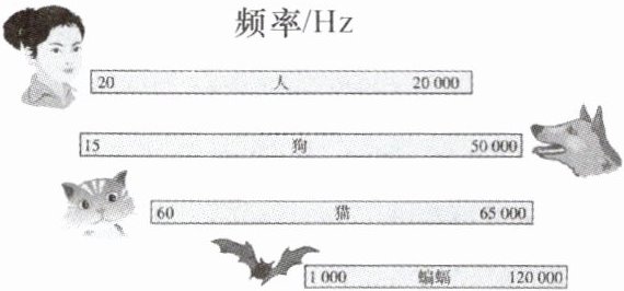 6. 如图是人和狗等动物的听觉频率范围。某种飞蛾飞行时在1 min内翅膀振动1080次,不考虑距离因素,则这种飞蛾飞行时发出的声音(