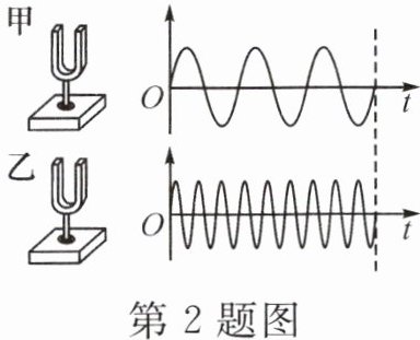 2. 如图是敲响两个不同音叉发出的声音的波形图,其中甲音叉的振动频率