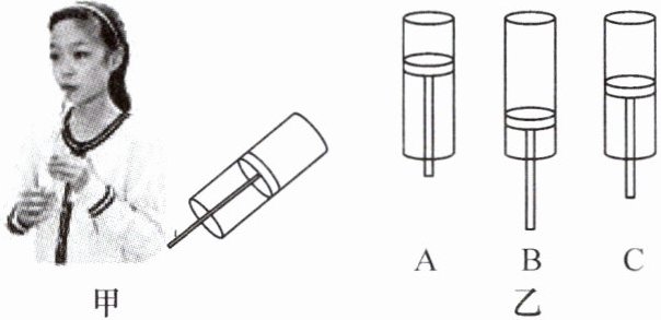 。如图乙所示,活塞在管中不同位置时,用嘴吹管的上端能分别吹出“do(1)”“re(2)”“mi(3)”三个音阶,则“do(1)”这个音阶与B