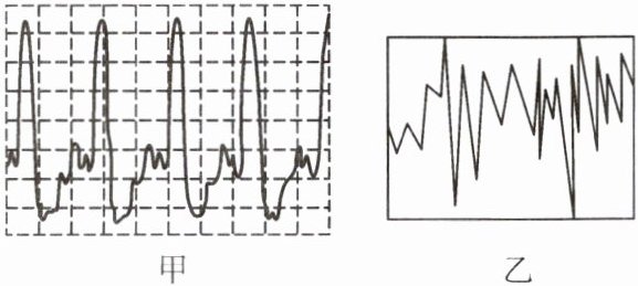 2. 如图甲、乙所示的两幅声音波形,可能是钢琴声音波形或泡沫塑料块刮玻璃时产生的噪声波形。下列判断正确的是(
