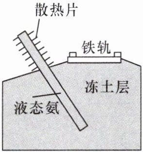 8. (2024·潍坊)为保证青藏铁路多年冻土区路基的稳定性,铁路两侧安装了许多封闭的中空热棒。如图所示,热棒下端插在冻土中,内部填充低沸点的液态氨,利用氨的物态变化给冻土降温,把冻土中的热量“搬运到”热棒上端,通过散热片向空中放热,从而使冻土保持稳定。下列说法正确的是(