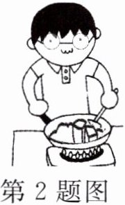 2. 如图所示,小明盛热汤时,戴的眼镜马上变得雾蒙蒙的,什么都看不清了,这是因为水先