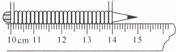 (4)图中测出 $ 25 $ 圈细铜丝线圈的长度为 $cm$,该细铜丝的直径为 $mm$。