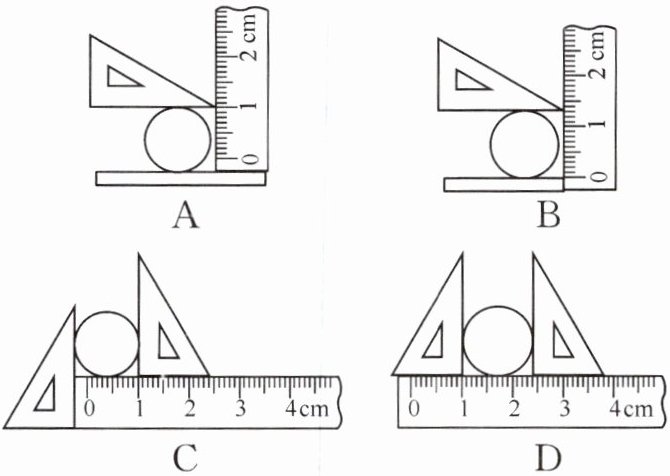 1. 如图所示为测量硬币直径的几种方法,其中正确的是( )