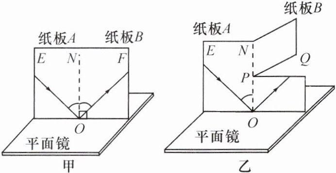 (5)将纸板B沿PQ剪开,把纸板B的上半部分向后折,如图乙所示,可看到纸板B的下半部分有反射光,上半部分无反射光,此现象表明:反射光线、入射光线和法线