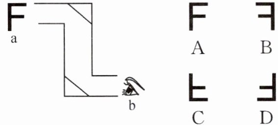 (2)当该潜望镜正对$a$处的“F”光源时,人眼在$b$处观察到的像是(