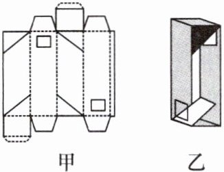 12. 制作潜望镜时,买两面小镜子,用一个长方形硬纸板制作成镜筒,宽度比小镜子稍大。两块平面镜分别安装在镜筒的上下两端,两块平面镜互相平行,都与水平方向成$45^{\circ}$角,就制作成了一个简单的潜望镜,如图甲、乙所示。